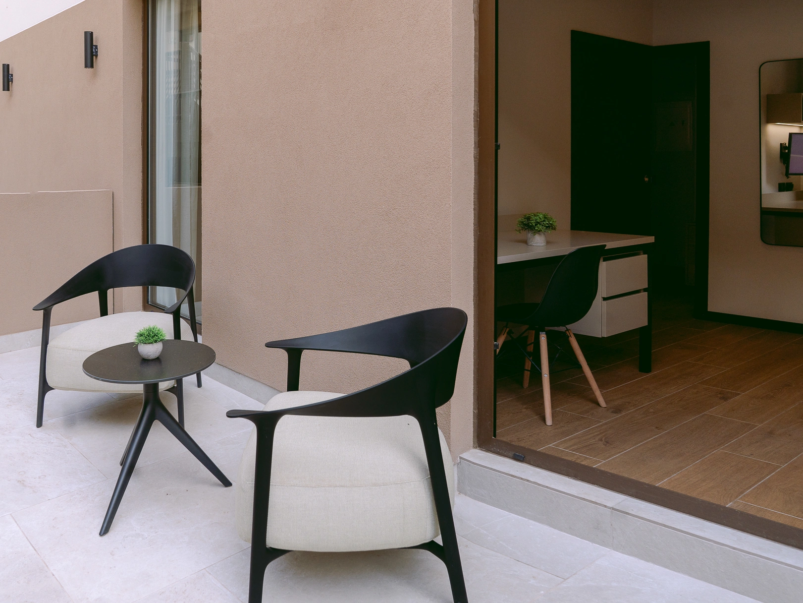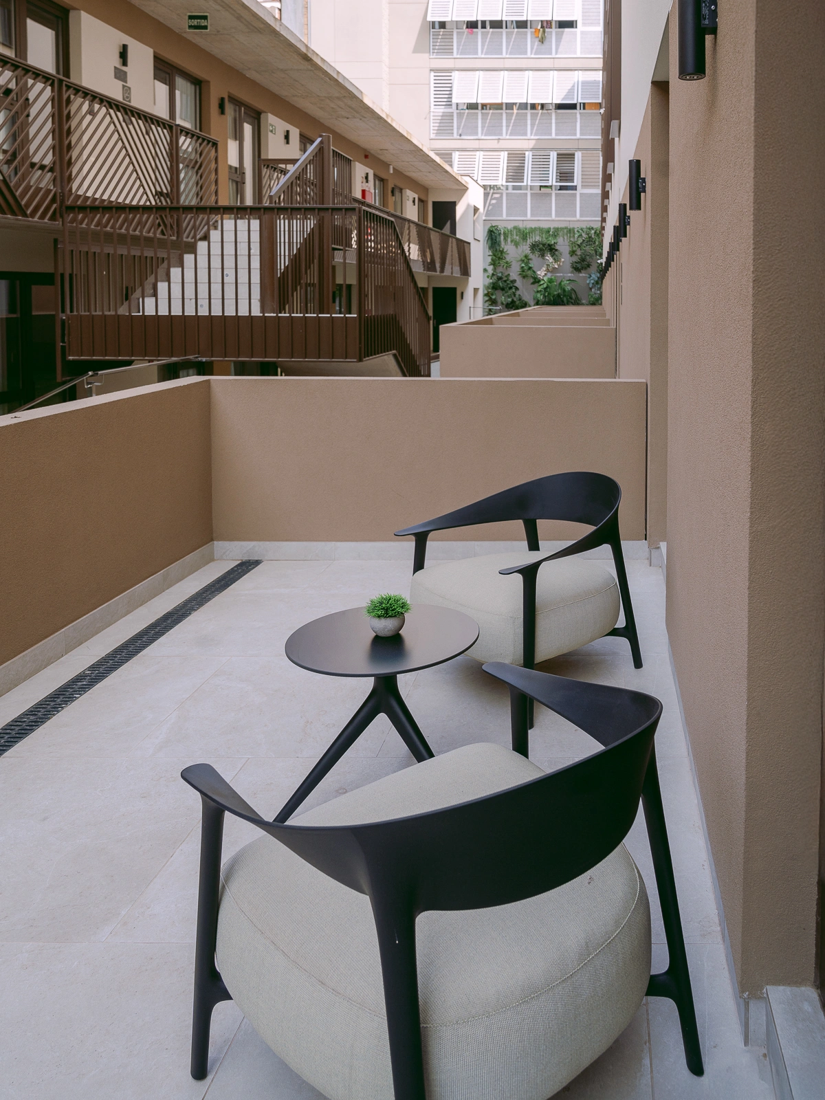 Co-living 32m² suite with a private bedroom, 13m² terrace, and shared kitchen and bathroom — designed for comfort and connection.